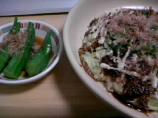 オクラとお好み焼き