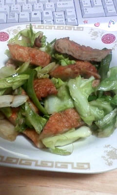 キャベツ、ピーマン、揚げかまぼこの適当炒めもの。