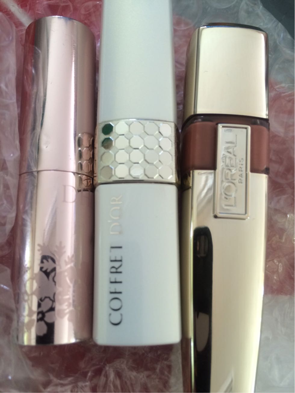 ロレアルが1番色味が強くて拭き取ってもうっすら色が残ってる。