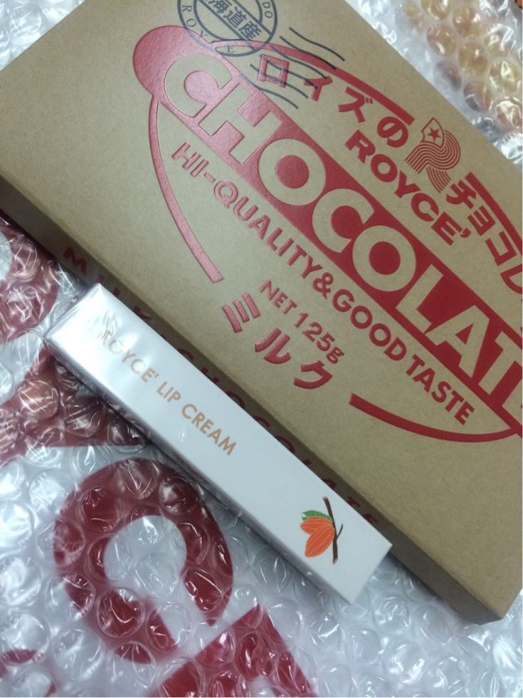 送料がかかるので数人で注文したロイズのチョコとリップ。
