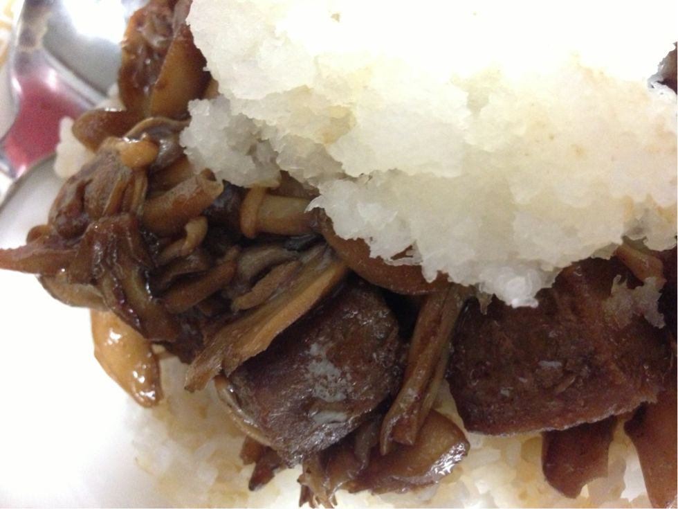 きのこ類(えのき、しめじ、舞茸)と大根おろしが揃ったので調理。