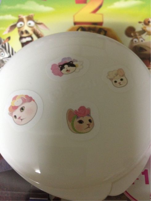 新しく買ってきたほうは猫のシールを貼り、(貼り方もセンスがないね・・)