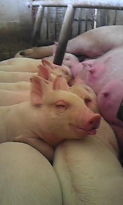 いつもの作業に子豚の体と廊下などの水洗作業。