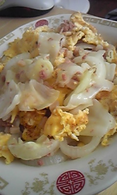キャベツ、玉ねぎ半分、コンビーフ、卵で。
