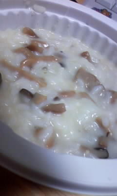 今日はメインがマカロニサラダなので、ご飯はやめてインスタントのリゾット。