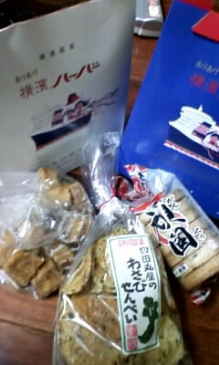 パン屋さんのラスク、わさびせんべい、塩せんべい。