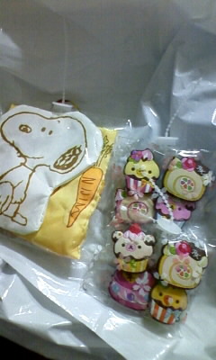 リラックマのクリップと、スヌーピーのミニバッグ。
