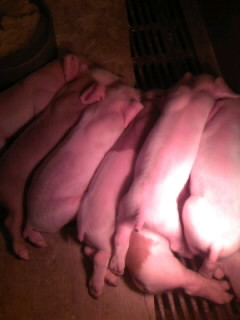 なぜか綺麗に横一列に並んで寝てる子豚ちゃん。